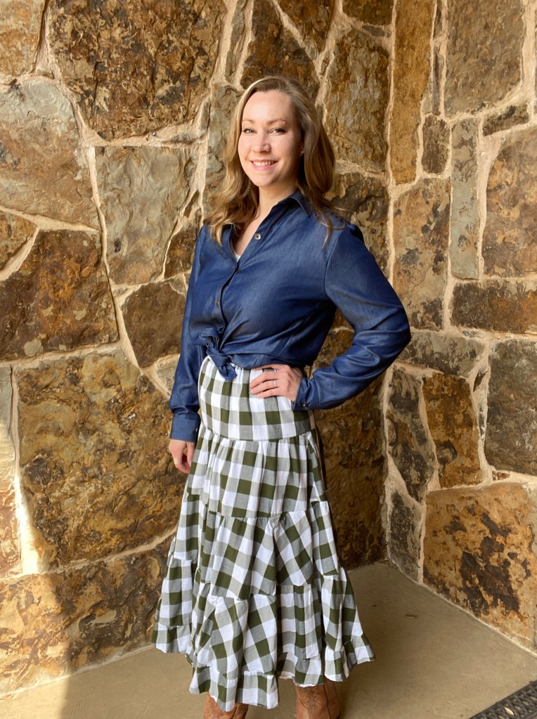 These simplicity skirts are exactly the same except one has an extra tier. My favorite is the longer one. The pattern is s1110. I wanted to make a similar skirt and I had another similar pattern so I decided to give that one a try. I like trying different patterns which is good and bad. It turns out I don’t like the new pattern as much but often I do stumble on something new or better. That just wasn’t the case this time around.