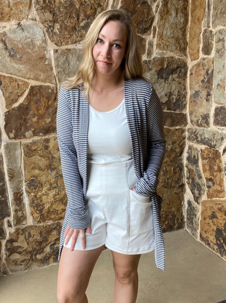 I chose one ready to wear item for this capsule because I already had it and thought it was wasteful to remake it. This jean jacket which I can’t remember where I bought it. The second topper is a Blackwood Cardigan from Helen’s closet.