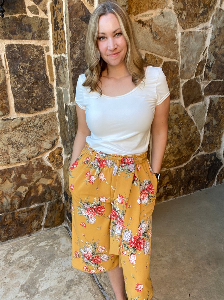 I went a little overboard on this next capsule. The original concept was for 6 pieces. Two bottoms, three tops and one topper. You can clearly see it in the pink/gray/black wardrobe. There’s a bit more in the orange/yellow/navy. Here goes . . .