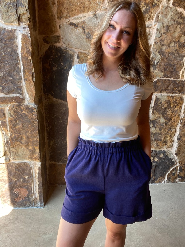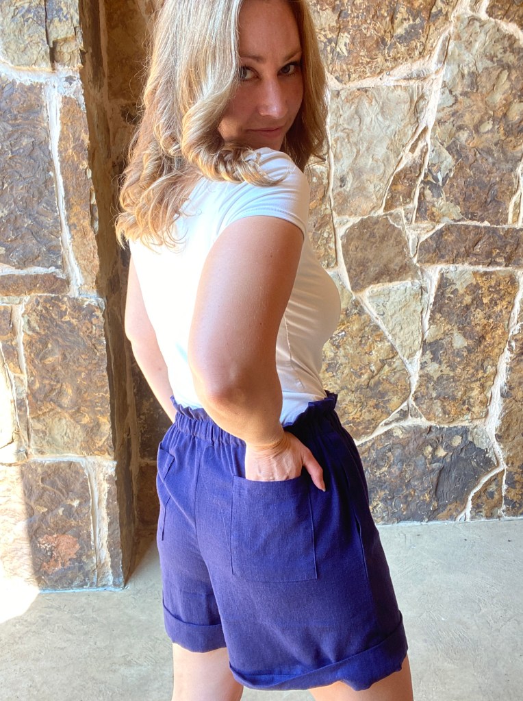 I made a navy, linen pair of Pietra Shorts, by Closetcore patterns.