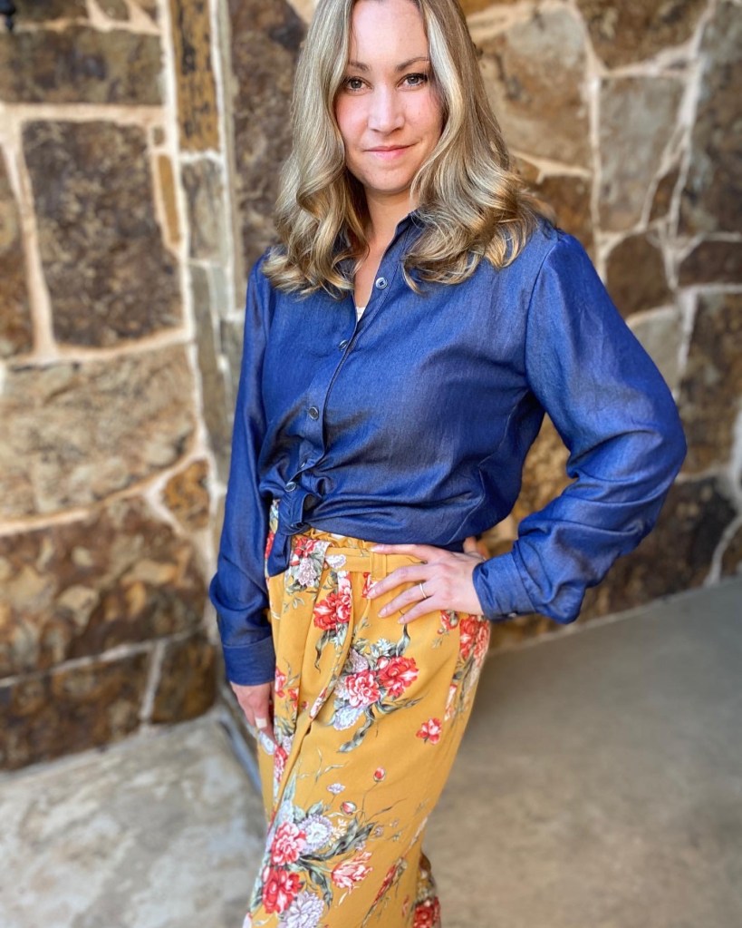 - Blue button up chambray shirt is McCall’s m6613
