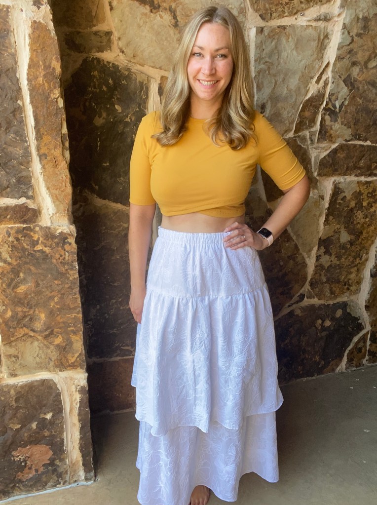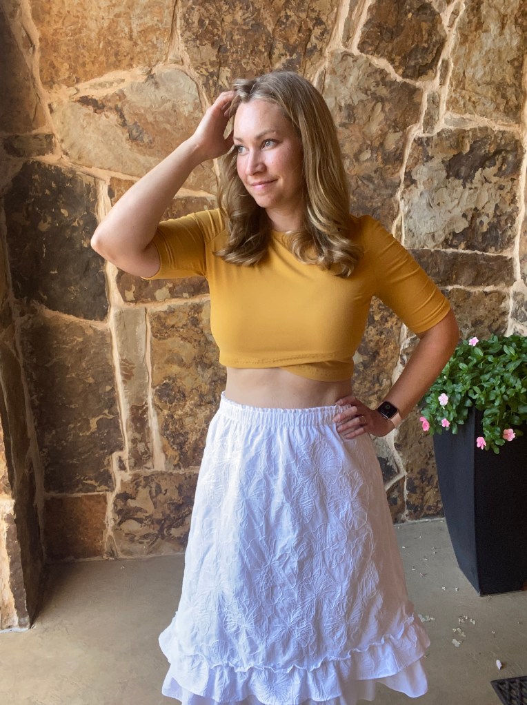 I’m finding that the greatest test of a pattern is how much you end up wearing it, how well it fits into your normal everyday life and how you feel each time you put it on. This one checks all of those boxes in every way. I always feel pretty in it, it’s comfortable and even though I like the short version I made of this pattern, the wind in Texas has tried to turn me into an exhibitionist when I wear it. Since I’m actually not interested in flashing people I have not worn it much at all since the day I nearly showed an entire Costco parking lot my underwear, awkward. And trying to push a cart and try to hold down four sides of a skirt as you hurry to your car and unload a mound of groceries into the car does not fit into my normal lifestyle, so I’ll stick with the long version.