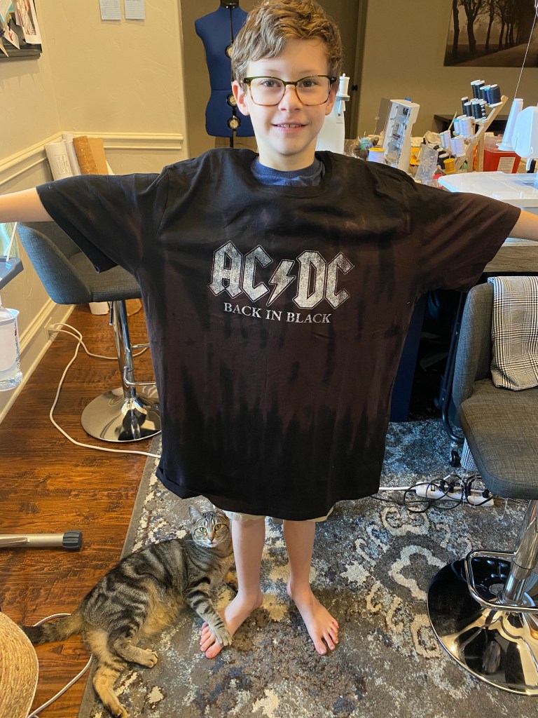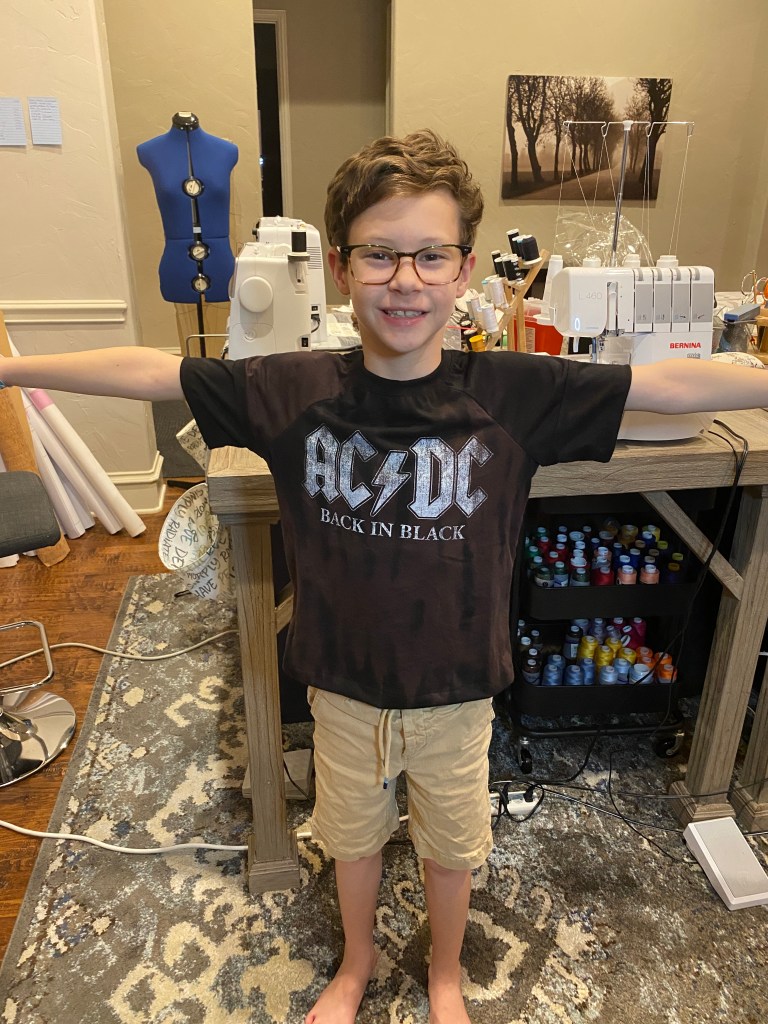 My youngest son is taking guitar lessons and has been introduced to a lot of music that isn’t my type of music but is quickly becoming his. He really wanted an ACDC t-shirt but I couldn’t find any in children sizes in all the stores we stopped at. I found plenty of adult sizes but not children’s. The shirts for his size were $25 on Amazon and I just didn’t want to pay that when I could get one at Sam’s Club for $12 in an adult size.