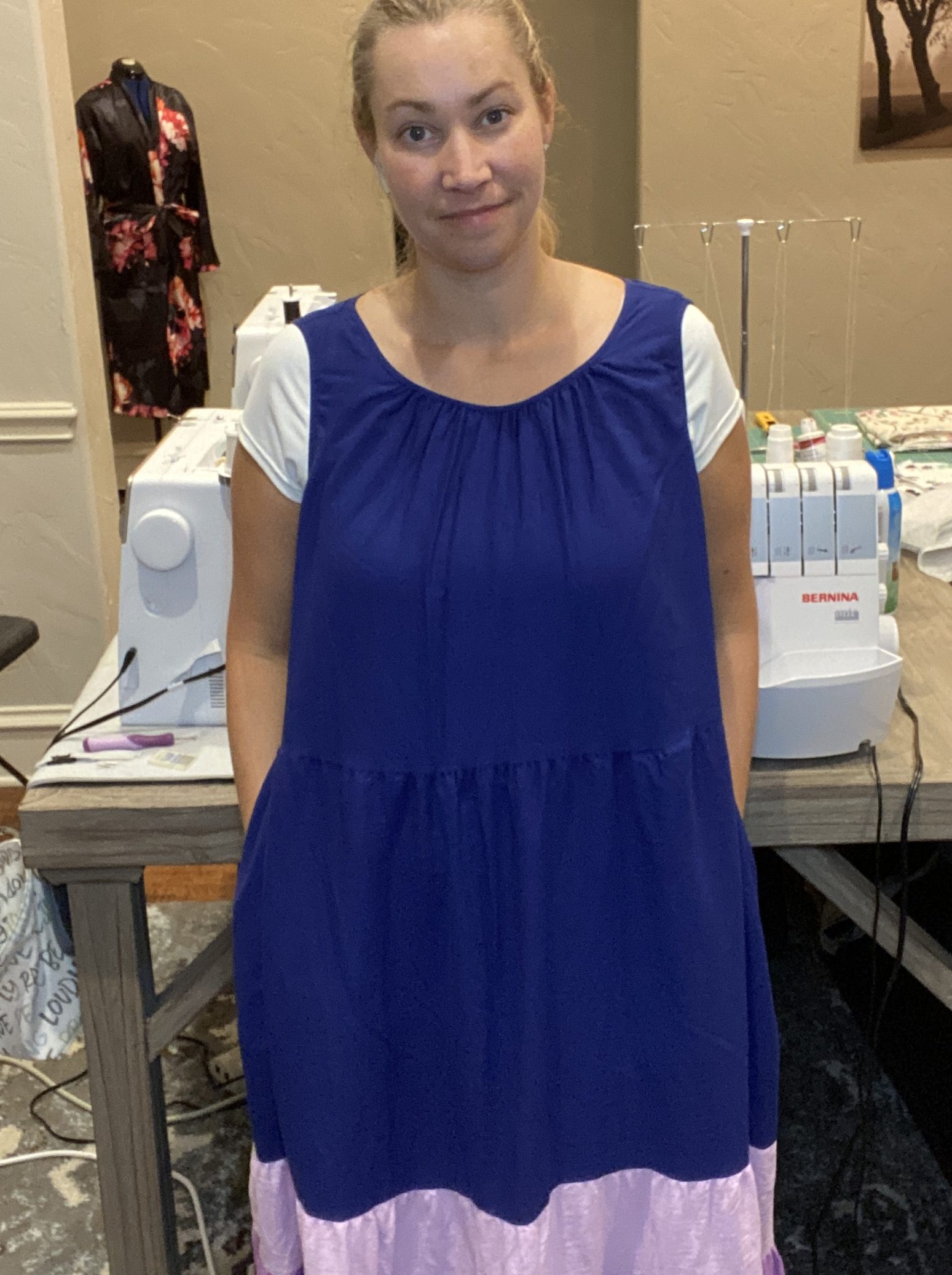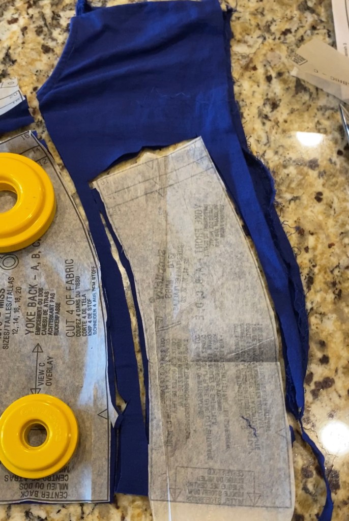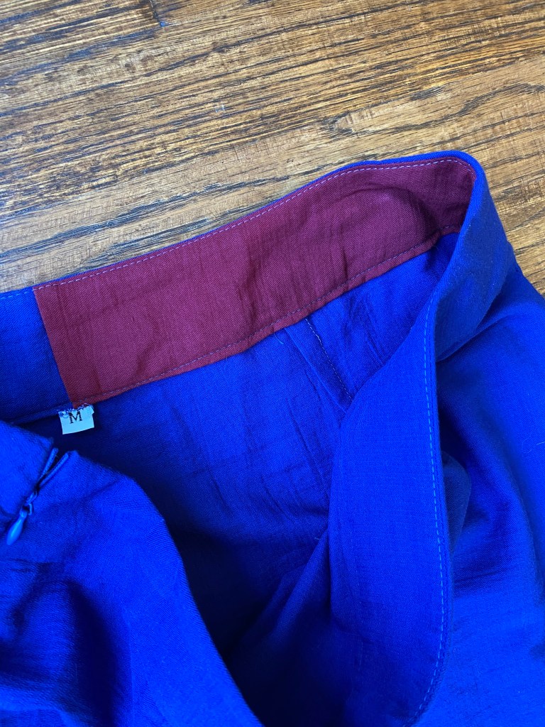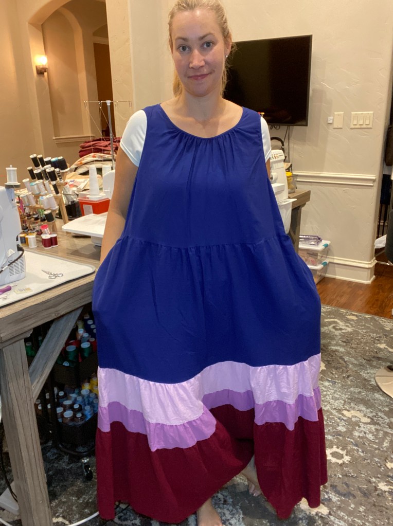 It did feel like a gamble since matching the side seams at the layers may be difficult. I decided to just go for it. My only slight issue was that I ran out of the purple/blue color and had to use a little maroon in order to complete the facing.
