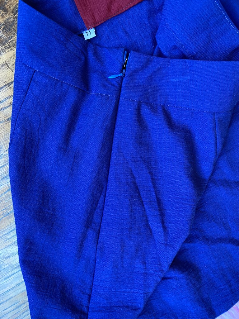 I cut a 16 but that was way too big and I ended up cutting it down quite a bit. Overall it was a fast and easy project because someone else did the gathering and most of the cutting out on this skirt. I haven’t done an invisible zipper in quite a while and I was delighted at how easily I got it in and how great it looked. I did see someone recommend wonder tape that washes away for zipper installation and I have to admit that it made zipper installation so much faster and professional looking.